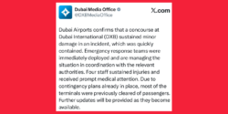 Dubai Airports confirms that a concourse at Dubai International (DXB) sustained minor damage in an incident, which was quickly contained. Emergency response teams were immediately deployed and are managing the situation in coordination with the relevant authorities.